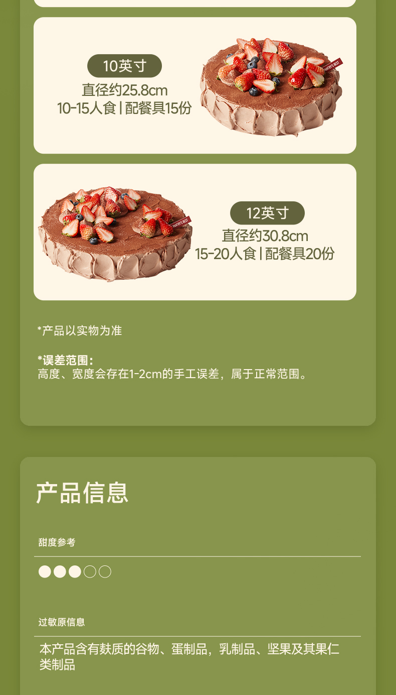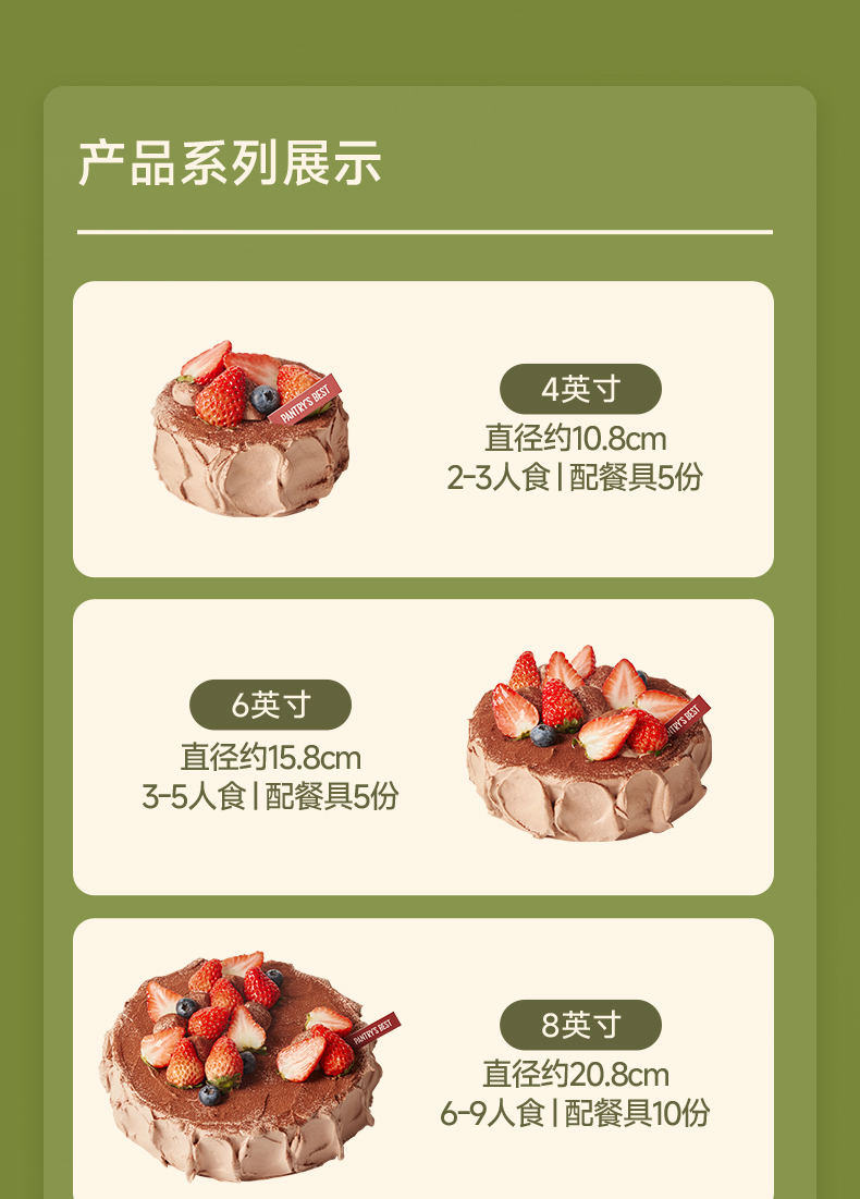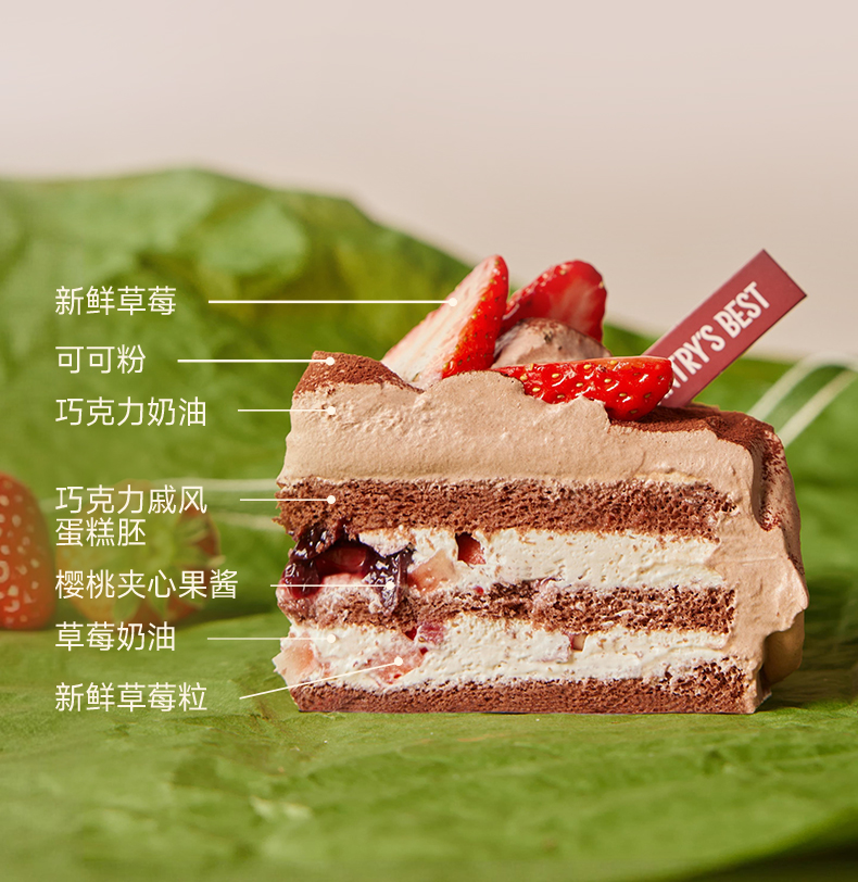 浓郁醇厚的巧克力奶油,酸甜的樱桃果酱与新鲜草莓果粒,绵软巧克力戚风蛋糕与草莓奶油更添果香与丝滑